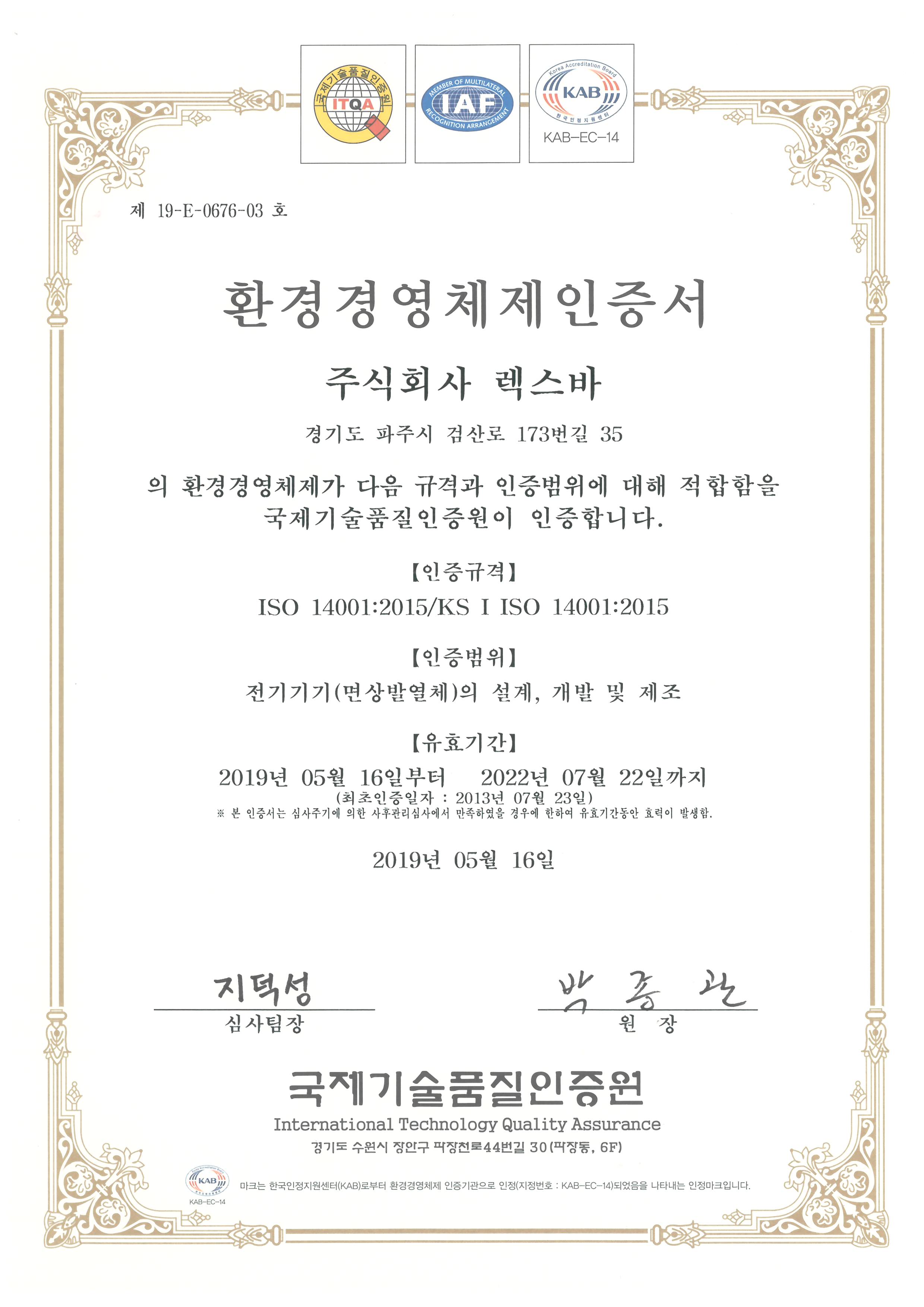 ISO 인증서 리뉴얼 2019 페이지 정보 작성자 Rexva 댓글 0건 조회 11,212회 작성일 19-06-19 17:08 목록 본문 이전글사우디아라비아 수출품 관련 적합성 인증서 19.06.20 다음글직원 단합 및 워크샵 실시 휴무 안내 19.06.10
