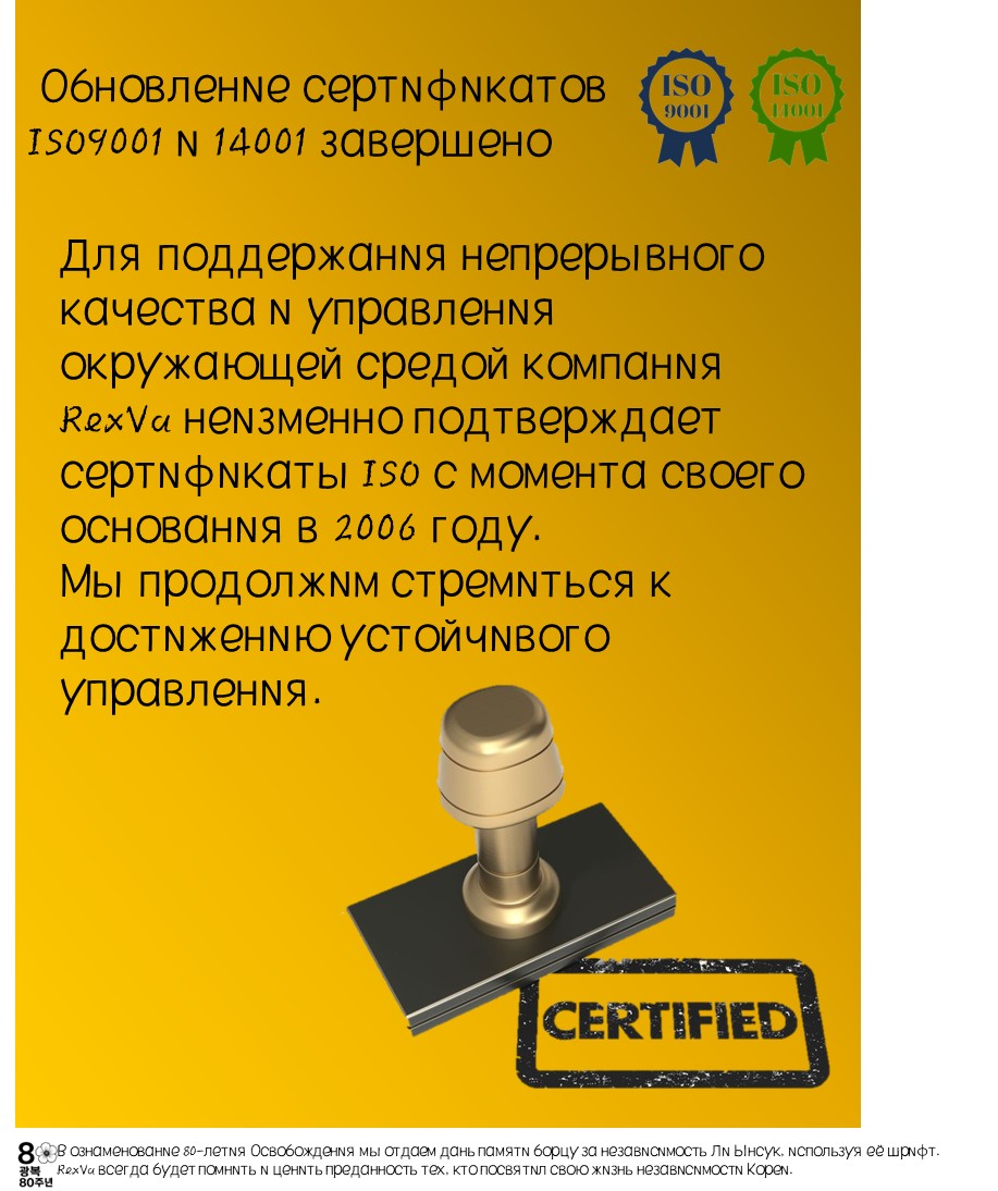 2025 Обновление сертификатов ISO9001 и 14001 завершено 페이지 정보 작성자 관리자 댓글 0건 조회 1,677회 작성일 25-09-25 15:38 목록 본문 관련링크 https://rexva.co.kr/renew_ru/data/editor/2509/f39e957c40288decccfd5be4… 1232회 연결 다음글2025 Патент на дизайн завершен 25.09.25